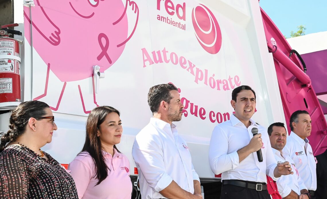 El Gobierno de Apodaca, en coordinación con la empresa Red Ambiental, arrancaron por décimo año consecutivo la campaña del Camión Rosa para concientizar a las mujeres a prevenir el cáncer de mamá.