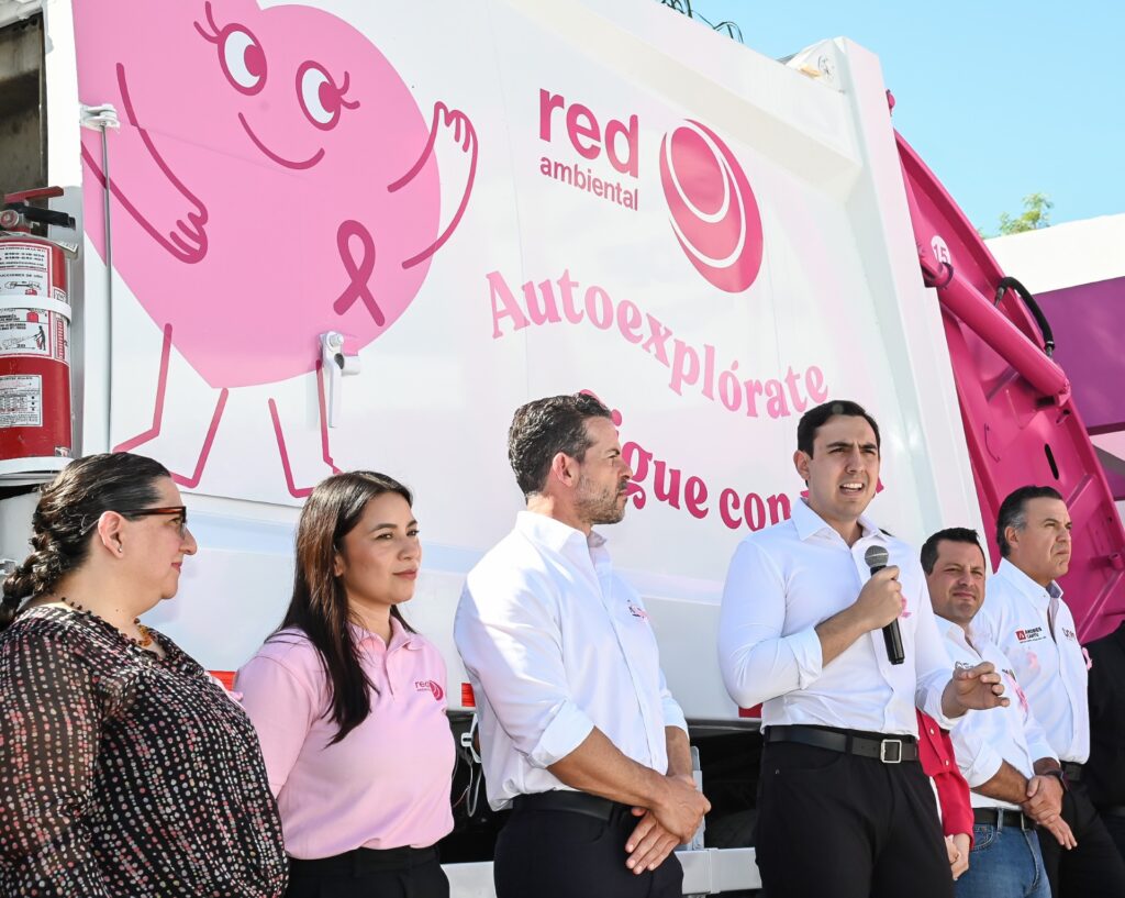 El Gobierno de Apodaca, en coordinación con la empresa Red Ambiental, arrancaron por décimo año consecutivo la campaña del Camión Rosa para concientizar a las mujeres a prevenir el cáncer de mamá.