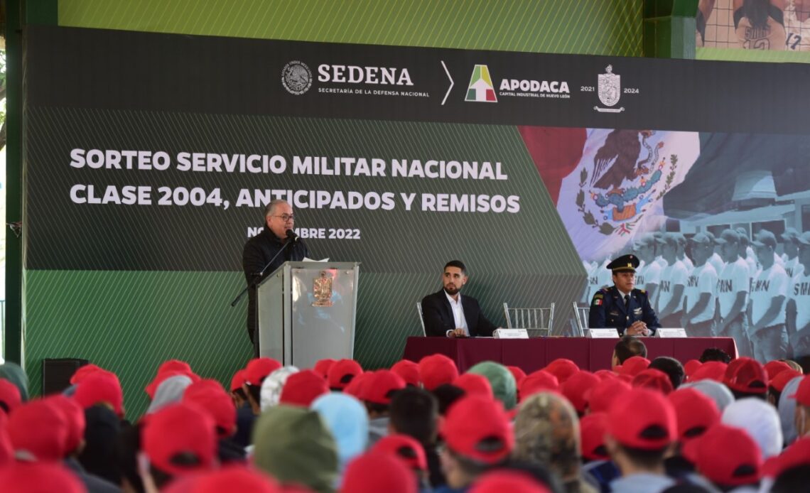 Para dar cumplimiento al compromiso de los jóvenes con la patria, el Gobierno Municipal de Apodaca, a través de la Secretaría del Republicano Ayuntamiento y la Junta Municipal de Reclutamiento, y en coordinación con la Secretaría de Defensa Nacional, se llevó a cabo el Sorteo Militar Clase 2004, Anticipados y Remisos.